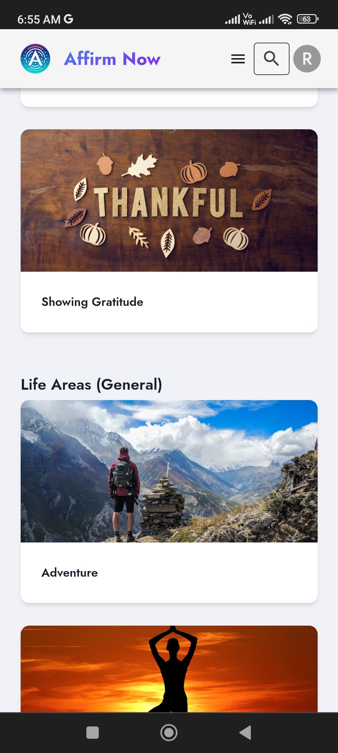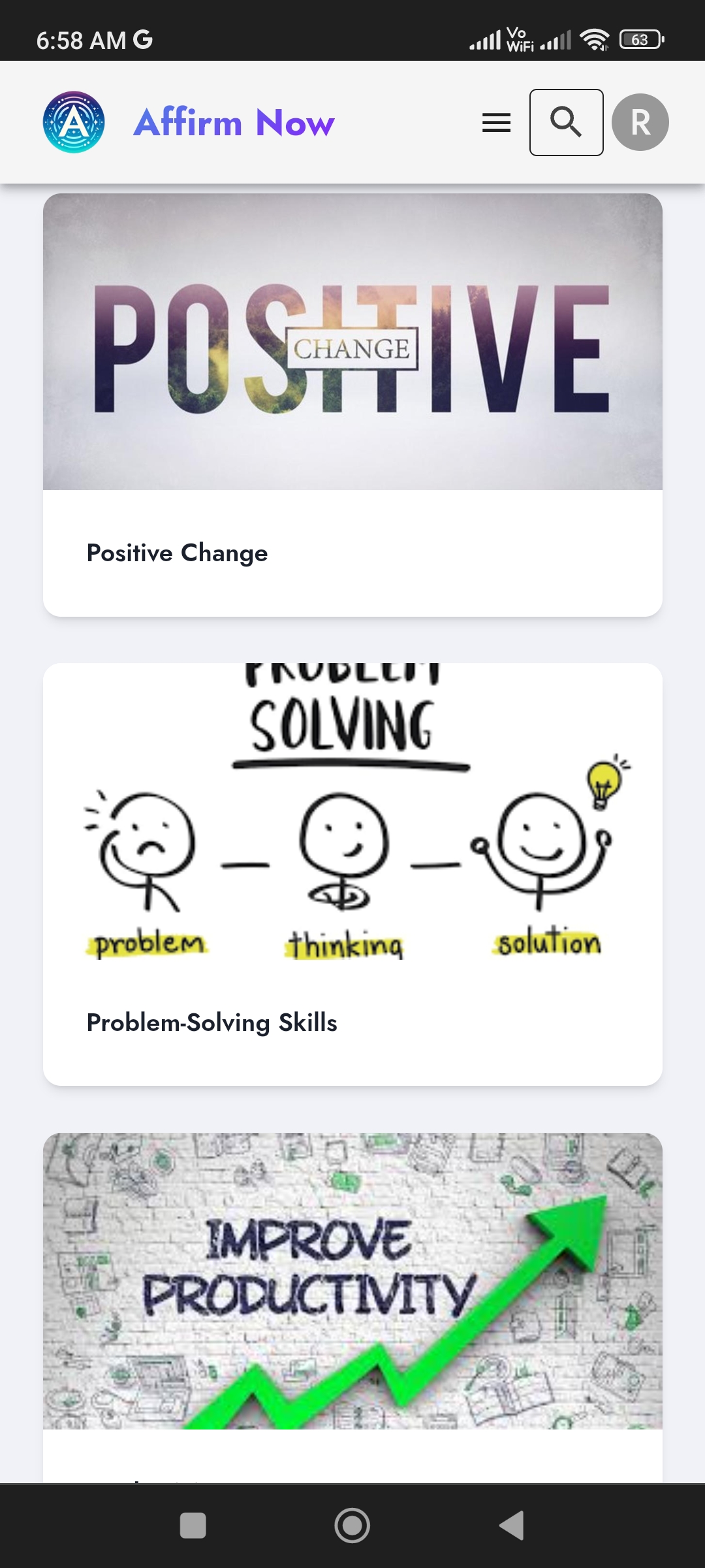 Quickly find affirmations by searching through categories and subcategories to suit your needs.